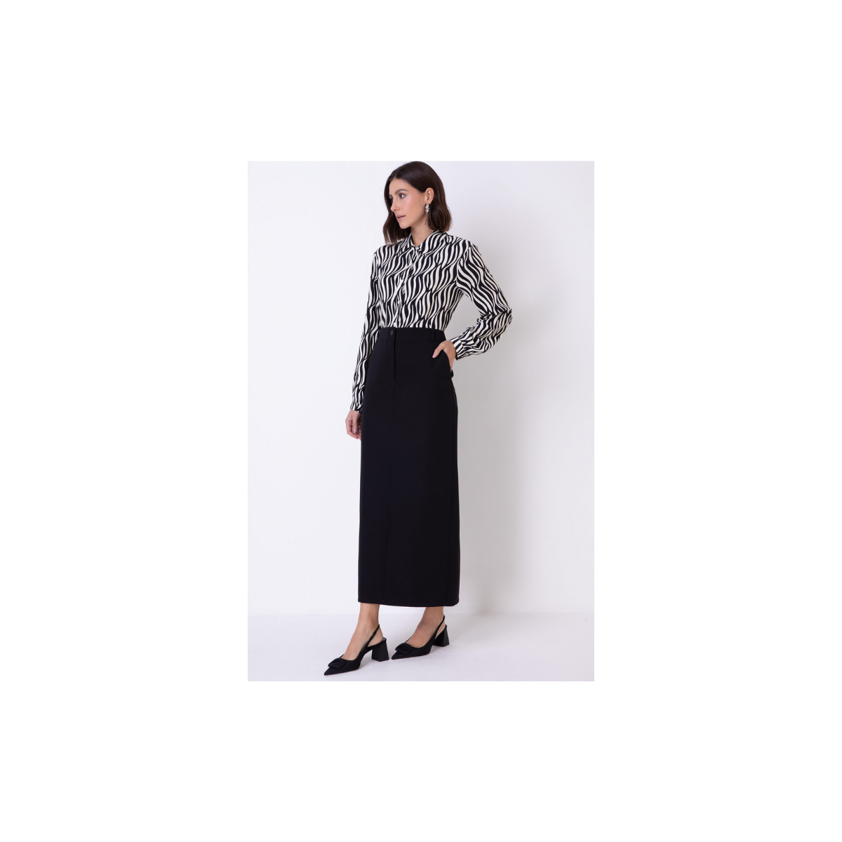 Apresentamos nossa elegante saia longa de alfaiataria com bolsos laterais e fenda nas costas, na cor preta. Confeccionada com tecido de alta qualidade, oferece conforto e estilo em cada passo. Os bolsos adicionam praticidade e modernidade, enquanto a fenda nas costas confere um toque de sofisticação. Versátil, é perfeita para ocasiões formais ou casuais.